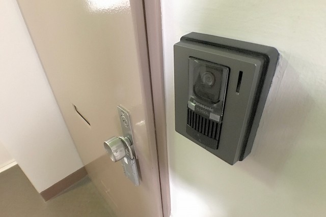 玄関ドア横にはテレビモニター付きインターホンが設置されていて、お部屋の中から訪問者を確認する事が出来ます。映像で確認してから応対するかを決められるので、しつこいセールスにつかまることもありませんよ。