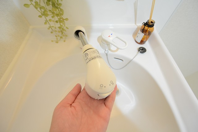 独立洗面台の水栓もシャワーヘッドになっていますよ