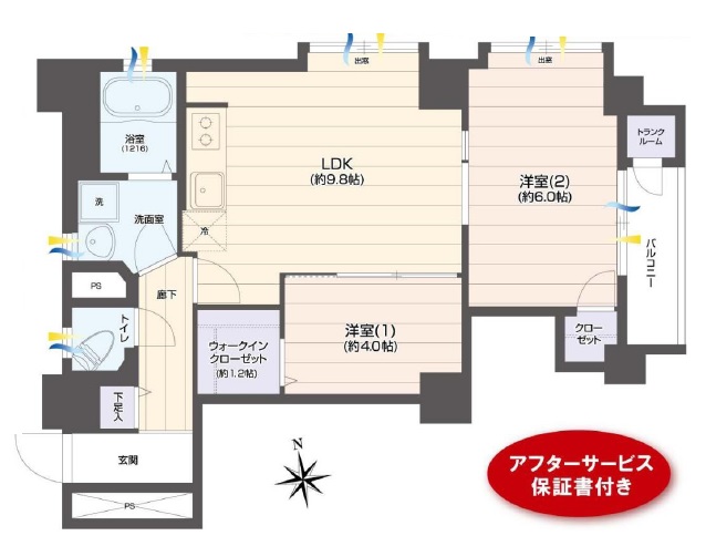 今回ご紹介するお部屋は4階、専有面積60.25㎡の3LDK。2面バルコニーが付いたファミリータイプのお部屋です。