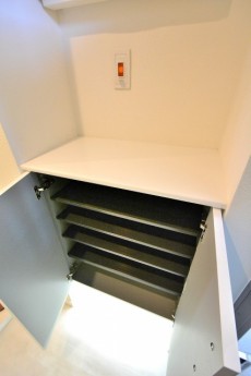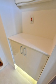 玄関横に設置されたシューズBOX上のカウンター部分は郵便物を一時的に置いたり鍵の置場としても便利。インテリアや植物などを置いてお好みの雰囲気に仕上げてみるのもよさそうです。