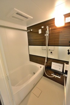 バスルームは追い焚き、浴室換気乾燥機能付き。設備充実で快適なバスタイムが過ごせます。壁パネルもお部屋の雰囲気と同じく木目調。統一感があります♪