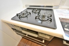 広めのシンクに3口のコンロがあるので、お料理の幅が広がりそうです(^_-)-☆