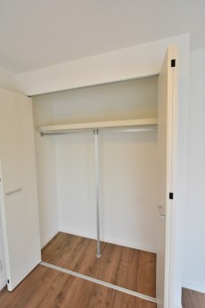 南東側には大きなクローゼットがあります。左側には丈の長いコート類や、たたみジワを付けたくない服を掛けておき、右側には箱などで畳んでしまっておける物を入れておけば、たくさん収納できそうです(^v^)