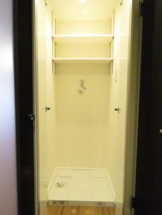 廊下突き当りには洗濯機スペース。棚付きです。