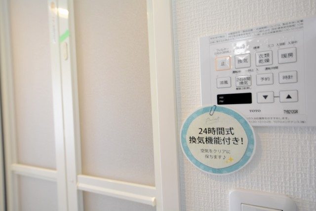 お風呂には浴室換気乾燥機能が付いているので、入浴後も浴室をカラッと乾燥させることができます。気を抜くとすぐにカビが発生したりするので、最低でも換気機能は常にON状態を維持しておくことをオススメします。