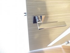 横に長いミラーには空間を広く見せてくれる効果があるので、実際の広さ以上にゆとりを感じられる空間になっていますよ。