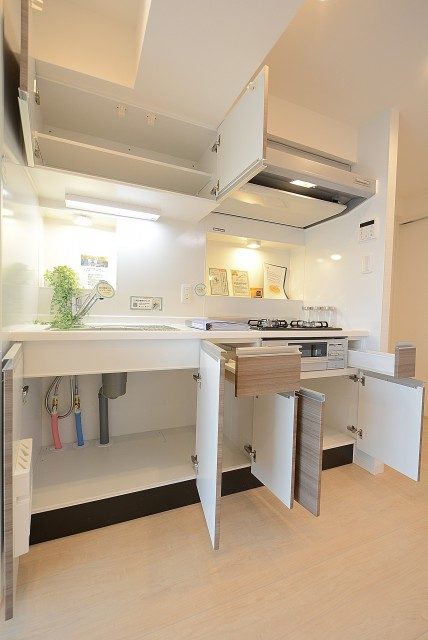 シンク下や吊戸棚など、収納スペースも盛りだくさんです。