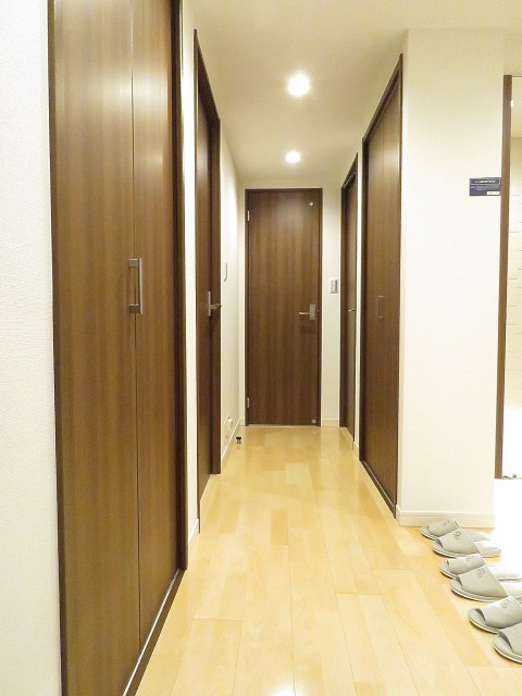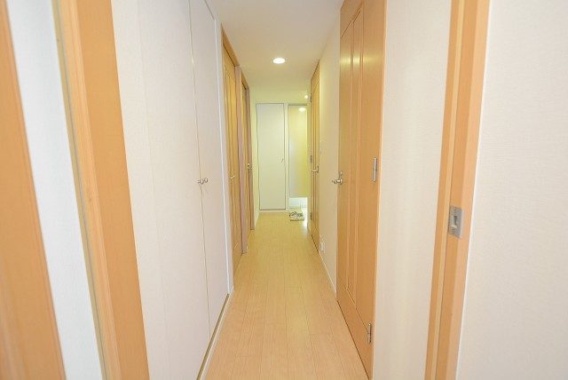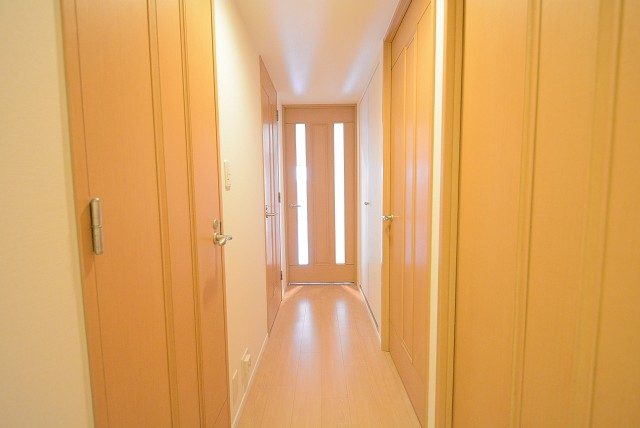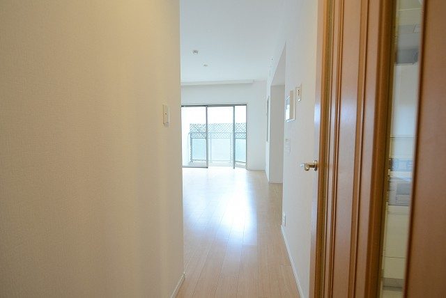 今度は玄関をあがり廊下を左方向へ。洋室、LDKの扉がこちら側にあります。