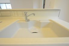 洗面ボウルはカウンターと一体型なので濡れた物を置いても気にならずお掃除も簡単です。