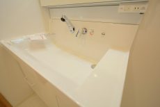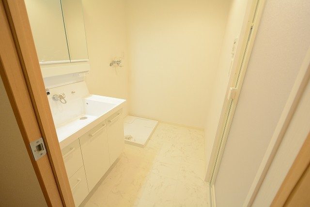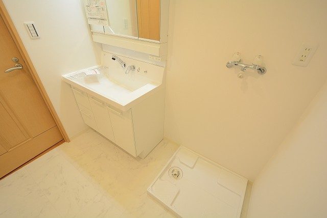 洗面化粧台の隣には洗濯機置場もあります。