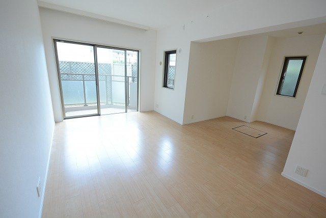 北東角部屋。LDには足元から温まる床暖房、さらにお部屋に合わせた家具もついています。 室内はリノベーション済みです。