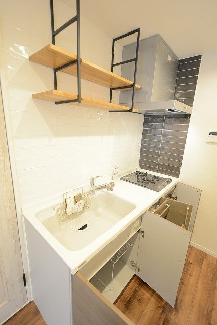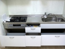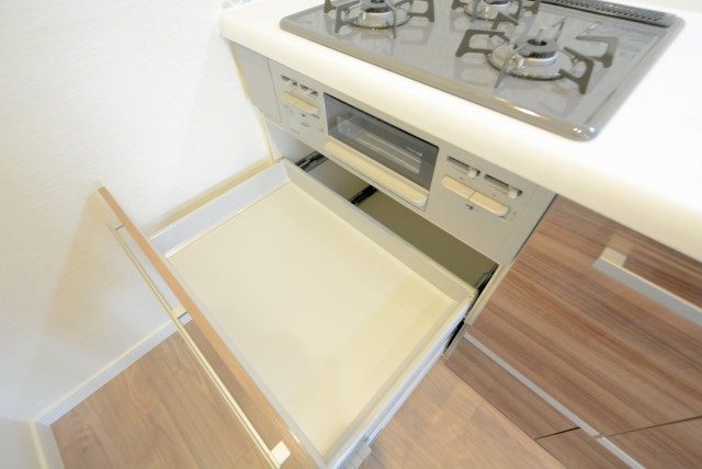 スライド式の収納はキッチングッズの出し入れもしやすそうです。