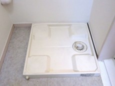 洗濯パンは正面に設置されています。上には棚もあるので手の届くところに洗剤を置いておけますよ。家事も快適に進められそうです。