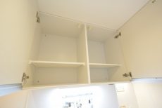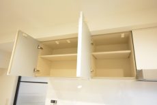 吊戸棚には補充品や掃除道具などが収納可能です。