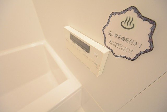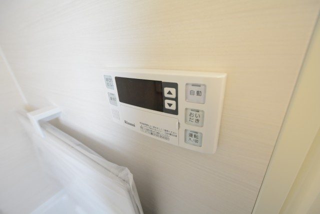 浴槽すぐ近くにはボタンがあります。入浴中でも温度調節可能です♪