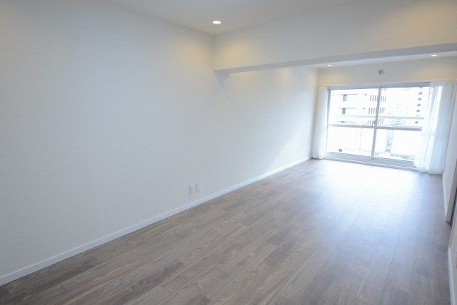 窓に向かって縦長のお部屋でキッチン、ダイニング、リビングと並べればレイアウトに悩むこともなさそうです。柱などの凸凹があまりないのも嬉しいですね。LDKには珍しくクローゼットが二つも付いています。