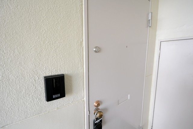 TVモニター付きインターフォンは扉のすぐ横にあります。