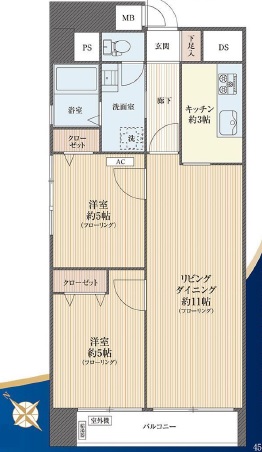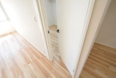 南東向きの約4帖の洋室2と南西向きの約4.5帖の洋室1。どちらもLDKに面しています。入口に引き戸を使用しているので扉の開け閉めによるデッドスペースもなく、お部屋のスペースを無駄なく使えますよ。洋室2には室内干しのできる物干し金具が付いています。