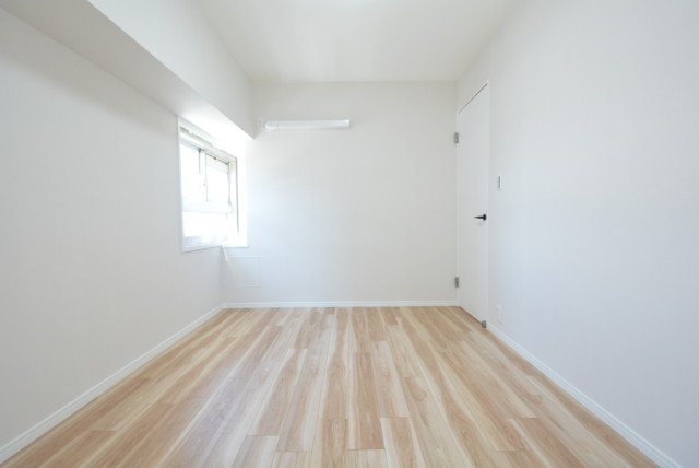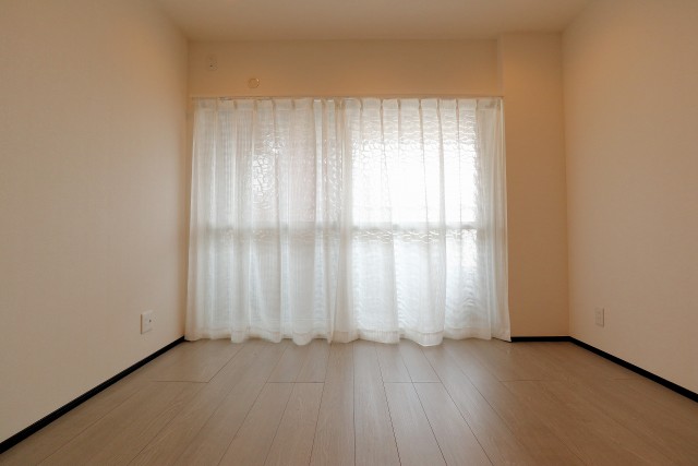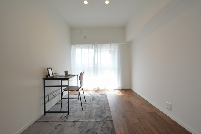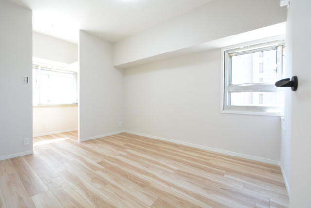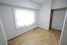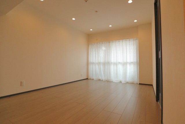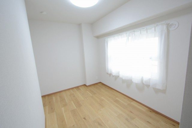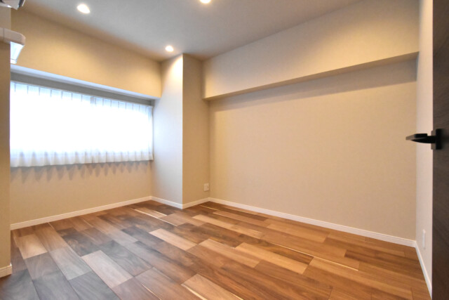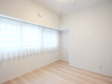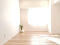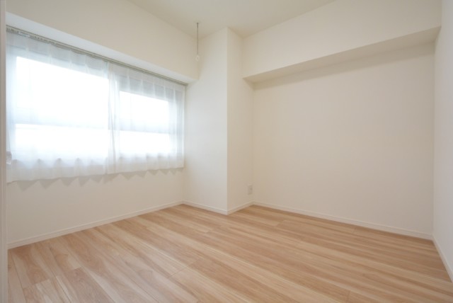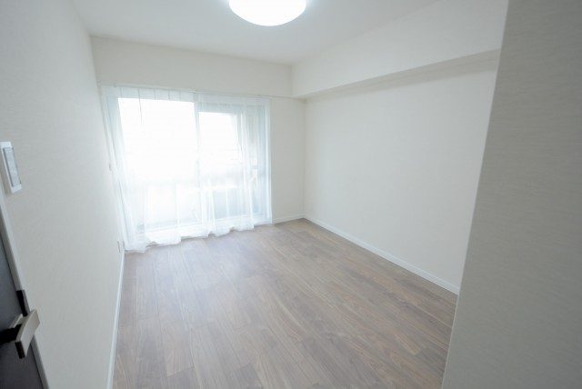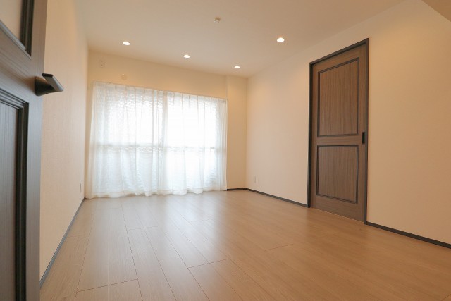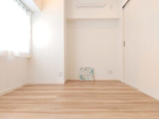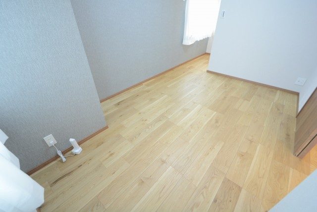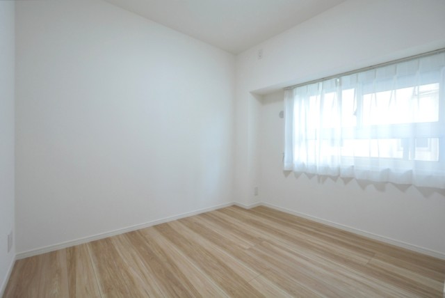 南東向きの窓の付いた明るいお部屋です。中間調の木目と白のシンプルな色使いでカーテンや家具も合わせやすそうですね。