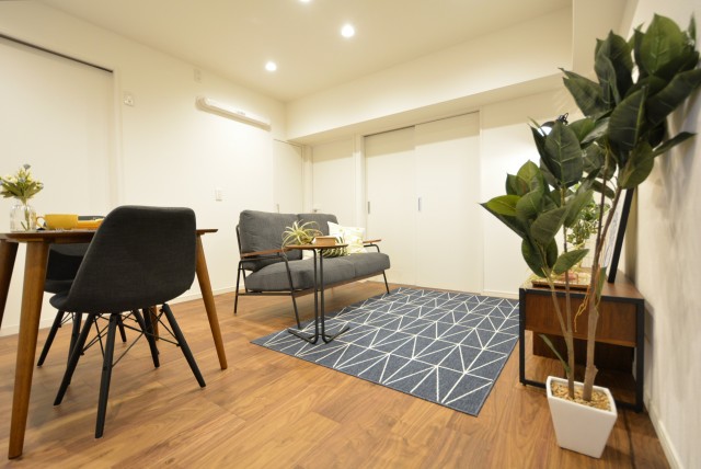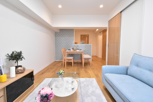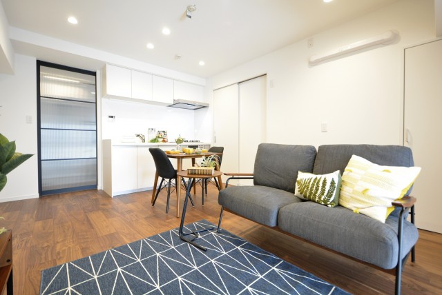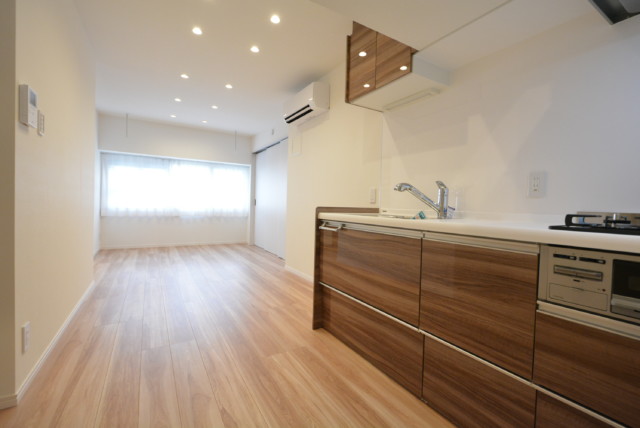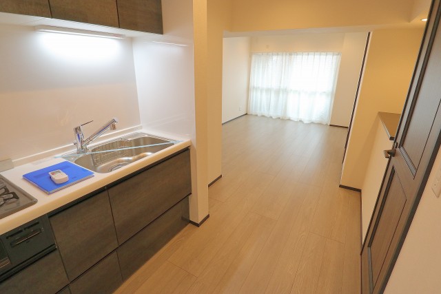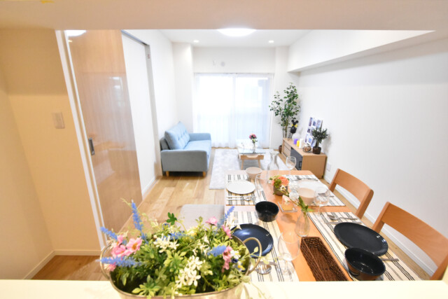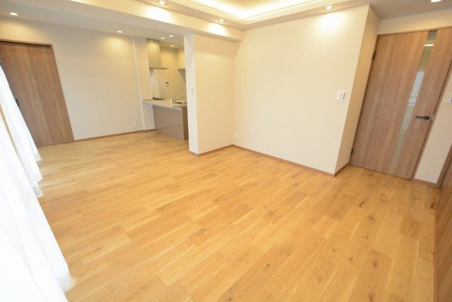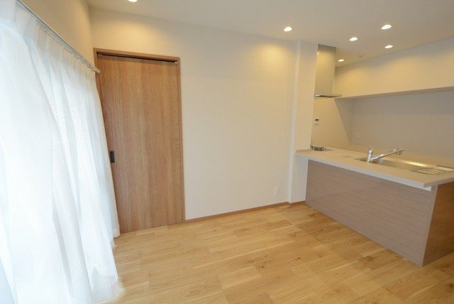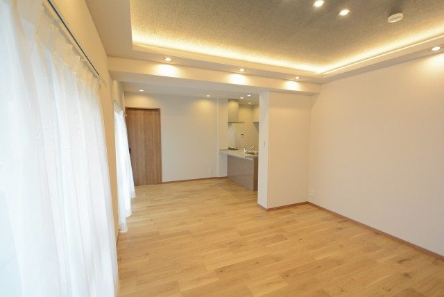 奥行があるこちらのリビングダイニングキッチンはキッチンとお食事スペースが分けられています。