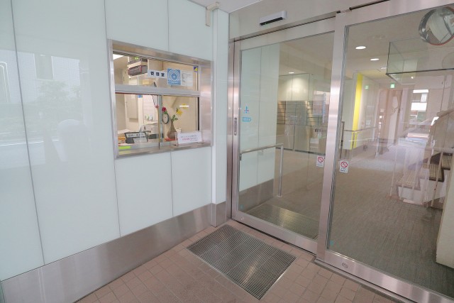 日勤の管理人さんがドアのところで見守って下さってる+清掃をしてくれているようで