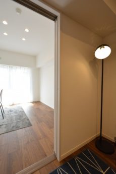今回ご紹介するお部屋は8階、専有面積48.14㎡の1SLDK。おひとり暮らしやDINKSの方にお勧めのお部屋です。東南角部屋で陽当たりは良好ですよ。では、早速行ってみましょう!