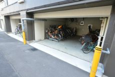 裏には駐車場と駐輪場があります。駐車場は月額25,000円、駐輪場は月額400円。空き状況はご確認下さい。