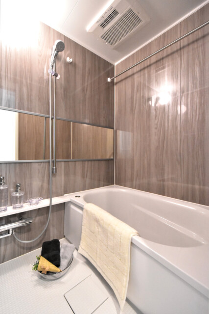 私はマンション住まいなので窓付きの浴室って憧れるんですよね。自然光の中湯舟に浸かっていると温泉みたいだと思いませんか?お洗濯物の乾燥に使える浴室換気乾燥機付き。バルコニーがないお部屋なのでこれは助かります。