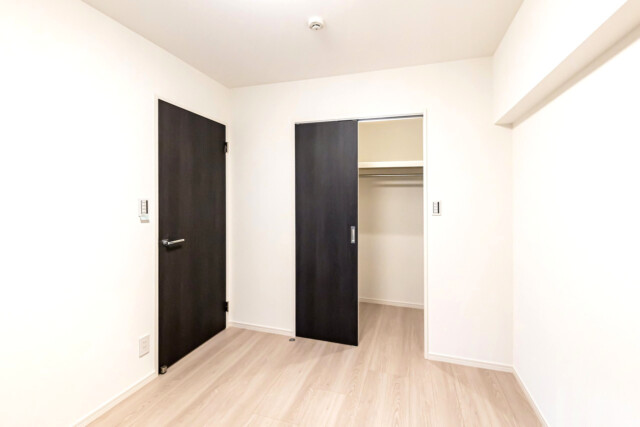 LDKと同じ南西向きバルコニーに面したお部屋です。収納はウォークインクローゼット!写真だとそれほど大きく見えないですが、コの字型にハンガーパイプが設置された大きなクローゼットです。衣類だけでなくスーツケースなどのかさばる物を入れておくにも良さそうです。