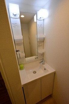 洗面台はシンクの両側がカウンターになっているので、色々物を置けてとても便利♪