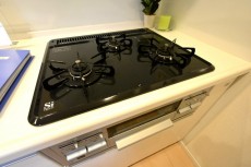 浄水器付水栓や3口コンロがあるので、お料理がしやすそう☆ワークトップもまな板が十分に置けるスペースが確保されているので、ストレスなくお料理できますね(^^)/