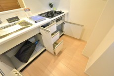 キッチン収納はキッチン下部にあります。お持ちの調理器具がたくさん入りそう(^^)/