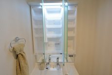 洗面化粧台は4枚のミラーからなっていて、内部は収納となっています。歯ブラシや基礎化粧品などはこちらにしまう事が出来ますね( ´∀`)b