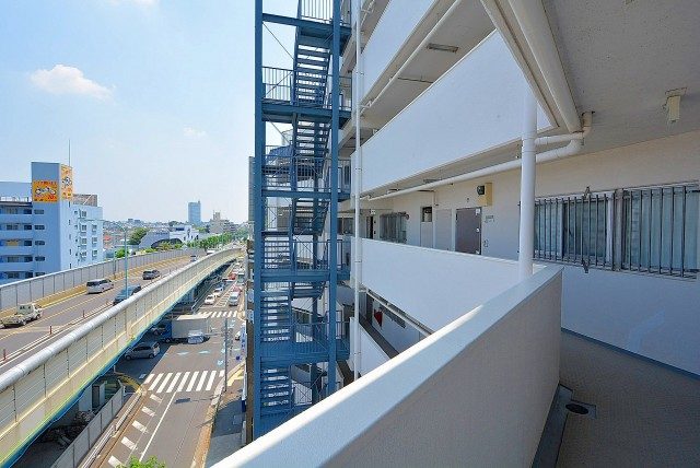 エレベーターをあがると目の前には環八が通っています。