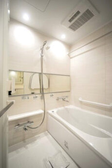 こちらはバスルーム。アイボリーを基調としているので優しい雰囲気が出ていますね。