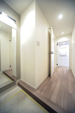 廊下に上がり、すぐ左のドアはサニタリールームです。