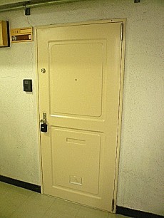 クリーム色の玄関です。安心の二箇所のロックになっています。
