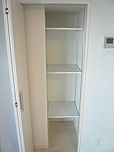 リビング・ダイニング・キッチンにあります収納です。棚の調整も可能なので、生活に必要な様々なかさばるストック物も仕舞えそうです。