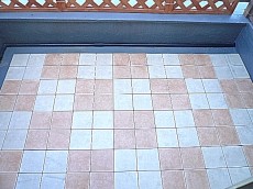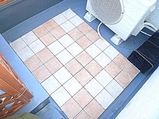 2つ目にある洋室に面しているバルコニーです。こちらもLDKに面しているバルコニーとお揃いのタイルが可愛らしく敷かれています。奥行きもしっかりあります。
