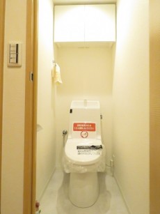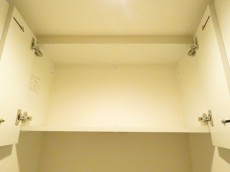 ウォシュレットとペーパーのストックを保管しておくのに便利な吊戸棚がついています。