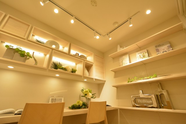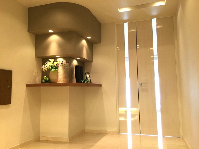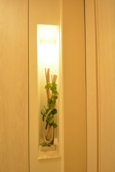 玄関左手には、デザイン性の高いカウンターが設置されています。写真の様にお花やお気に入りのインテリアを飾って、華やいだ雰囲気にしたいですね。