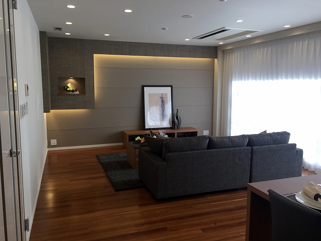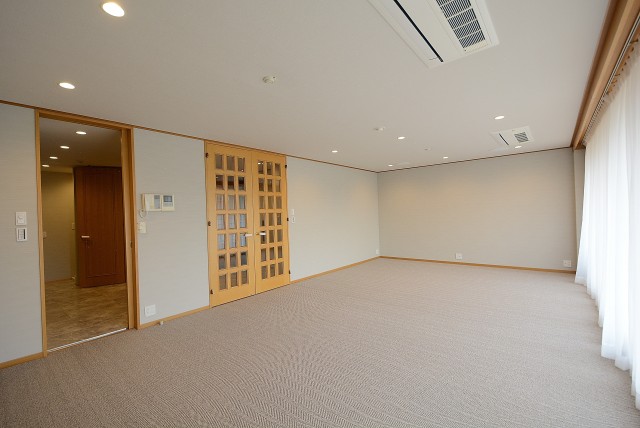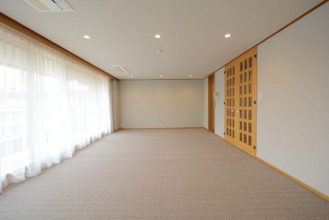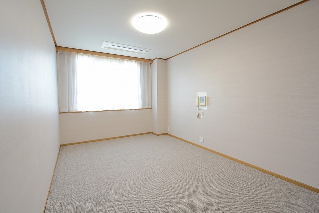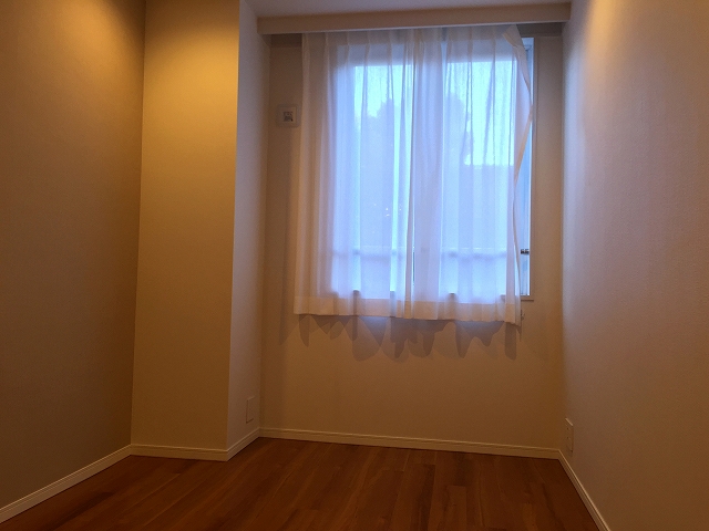 お隣のお部屋とほぼ同じ造りのお部屋です。違いは角に柱が無い事くらいでしょうか。シンプルな色使いなので、どんな家具でも合わせられそうですね。