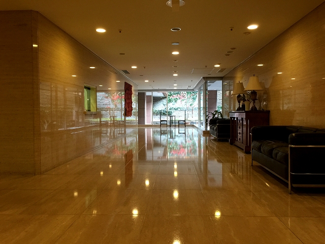 ピッカピカに磨かれた天然石がまるでホテルの様な空間です。