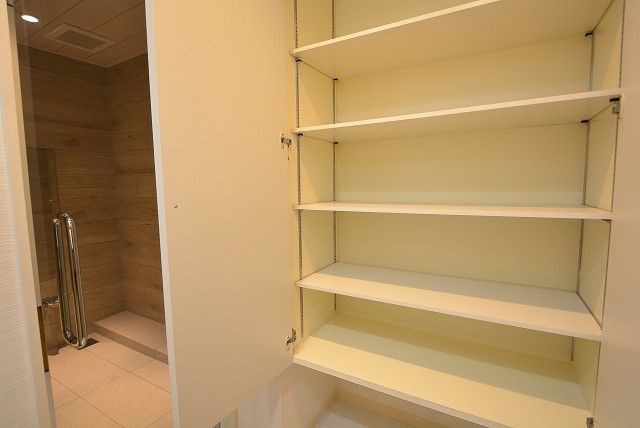 可動式の棚で高さのある大事な物もラクにしまえますね!