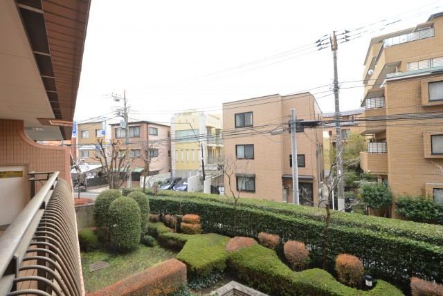 2階ですので眺望という感じではありませんが、敷地内の綺麗に整えられた緑がよく見えます。広いスペースによって前の建物もあまり気になりません。