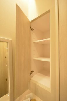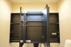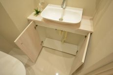 収納はミラーキャビネットと洗面台の下になります。細かい物から大きな物まで上手く収まりそうですね。