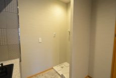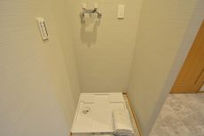 洗濯機スぺ―スには扉が付いていて、生活感が出ないように工夫されていました。