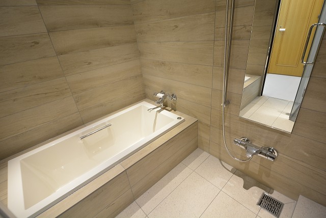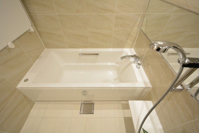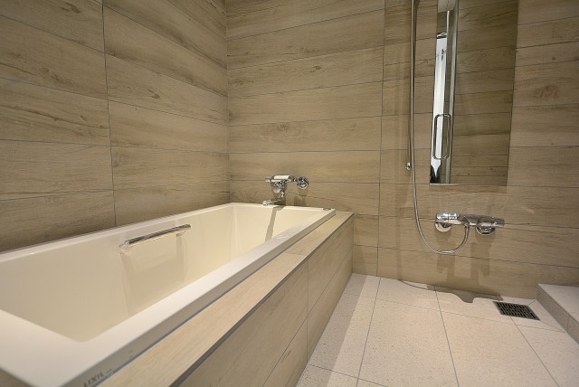 足を伸ばしてゆったり浸かれる広々とした浴槽。一日の疲れも溶けていきそうです(^^)