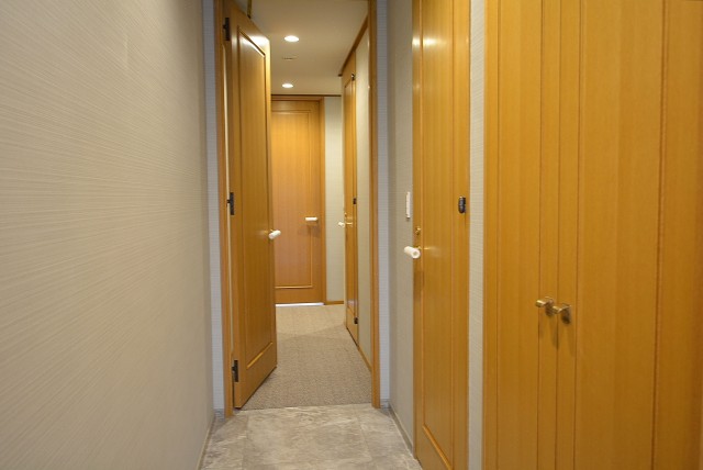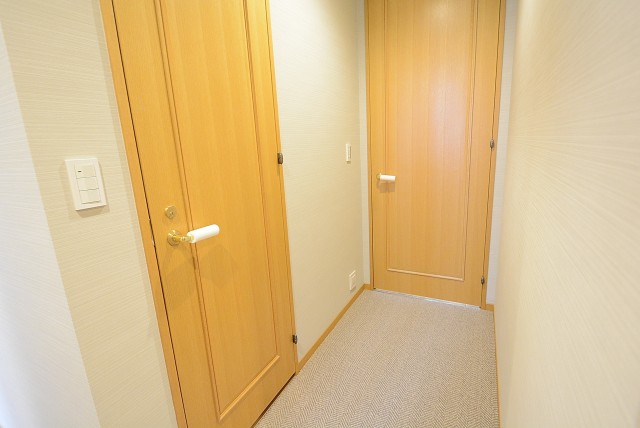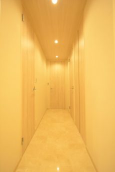 エレベーターを降りるとお部屋が2つ。廊下は大理石の上に絨毯が敷かれています。