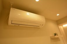 このお部屋にもエアコンが付いています。新生活を快適に始められるのは嬉しいですね。